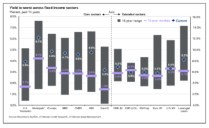 Diversification is advised for a core fixed income portfolio. Muni bonds are quite attractive due to its yield rising in 2025 on very high issuance. In addition, a stable to growing economy should support ABS and investment grade corporates, despite the latter’s tight spread.