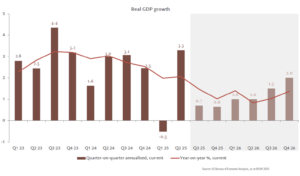 US economic growth is expected to pick up through next year. The economic environment appears to be transitioning from a stagflationary one in 2025 toward one of inflationary growth in 2026.